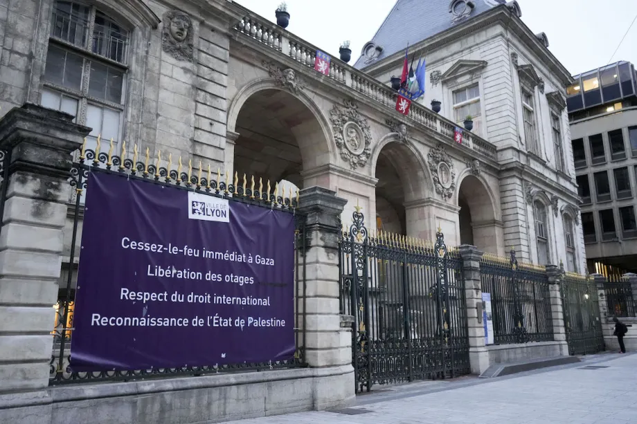 Bandeira palestina hasteada na prefeitura de Lyon, apesar da proibição francesa