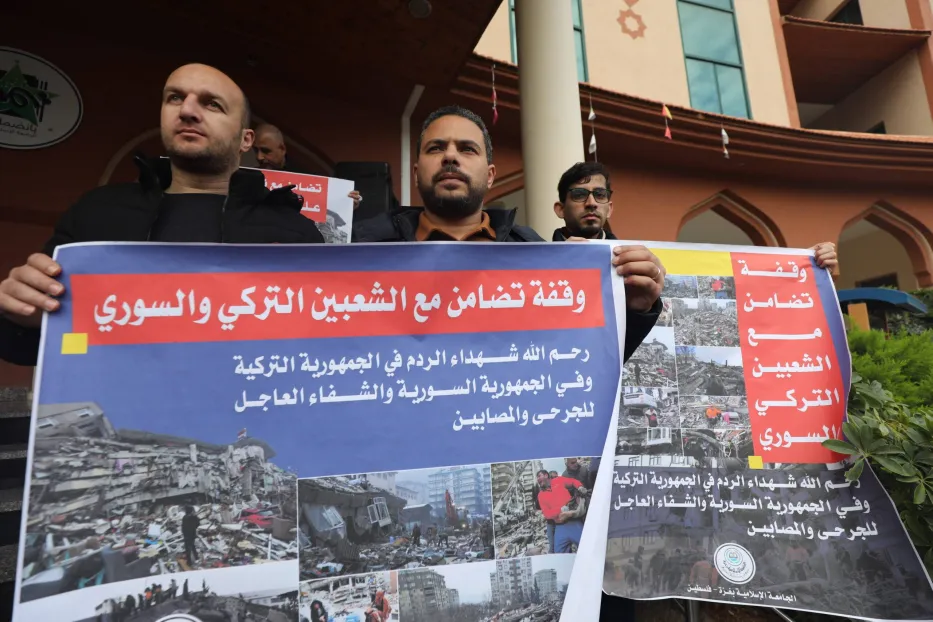 Habitantes de Gaza apoiam as vítimas do terremoto na Síria, Turquia