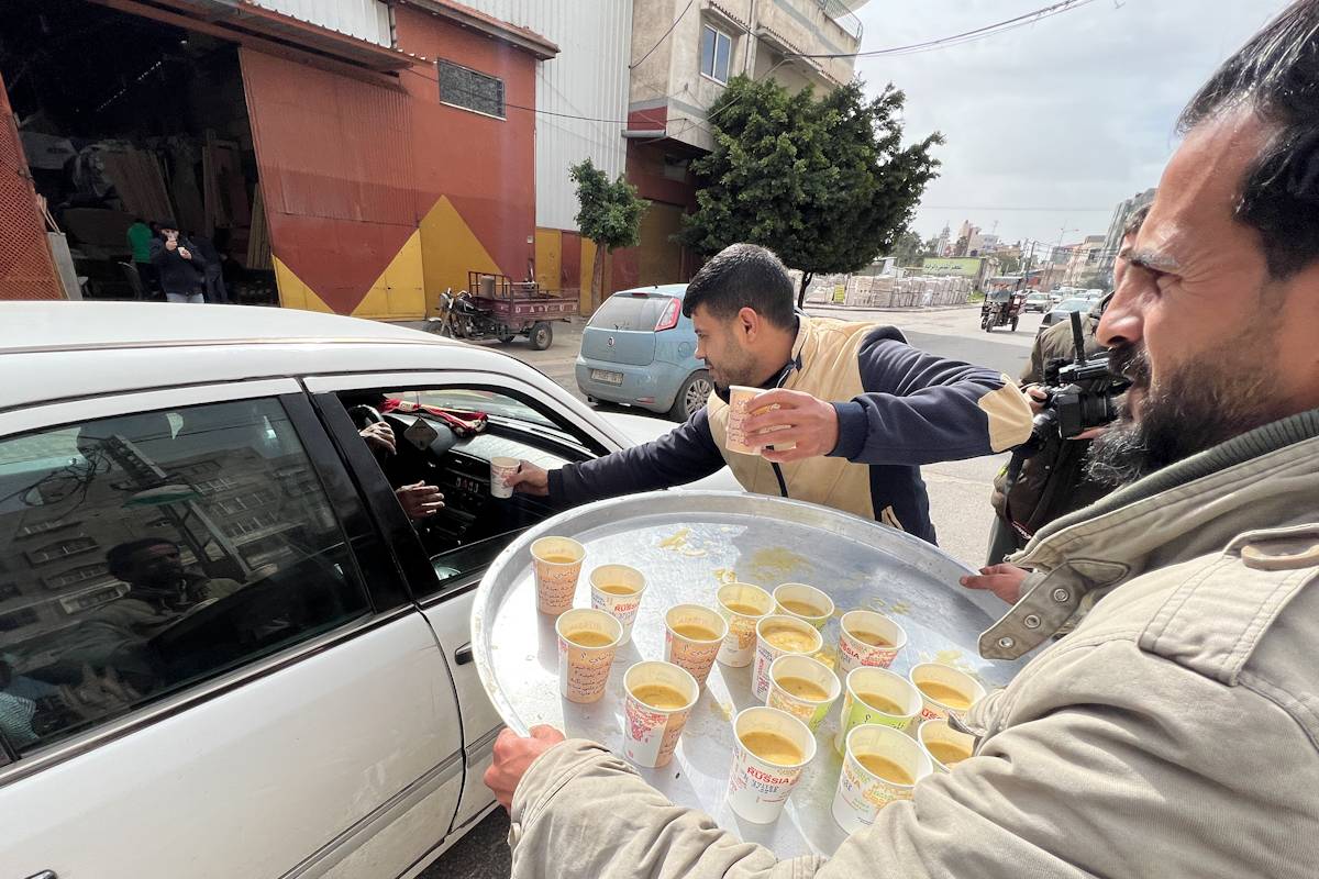 Uma vibração comunitária calorosa: moradores de Gaza distribuem sopa de lentilhas para os transeuntes