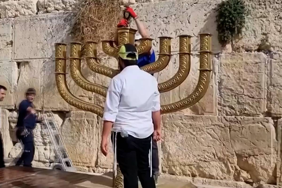 Colonos israelenses instalam menorá gigante no Muro de al-Buraq