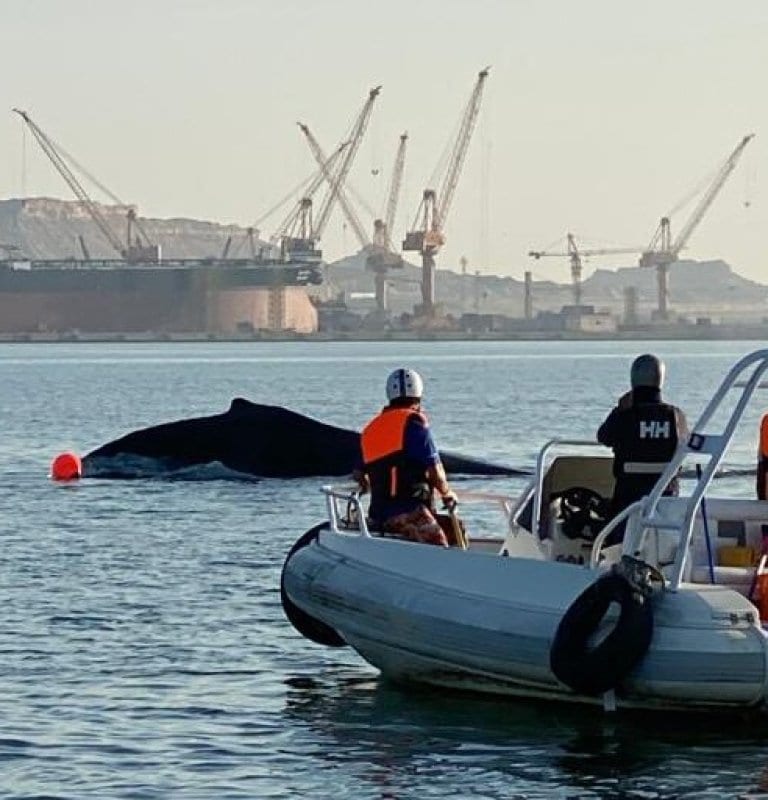 Baleia encalhada é resgatada em porto de Omã