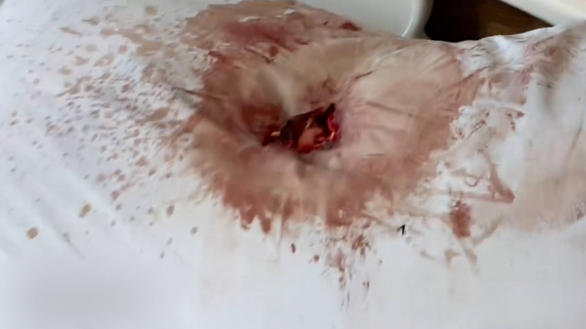Sala onde três palestinos foram executados por forças israelenses à paisana, dentro do hospital Bin Cena, em Jenin, na Cisjordânia ocupada