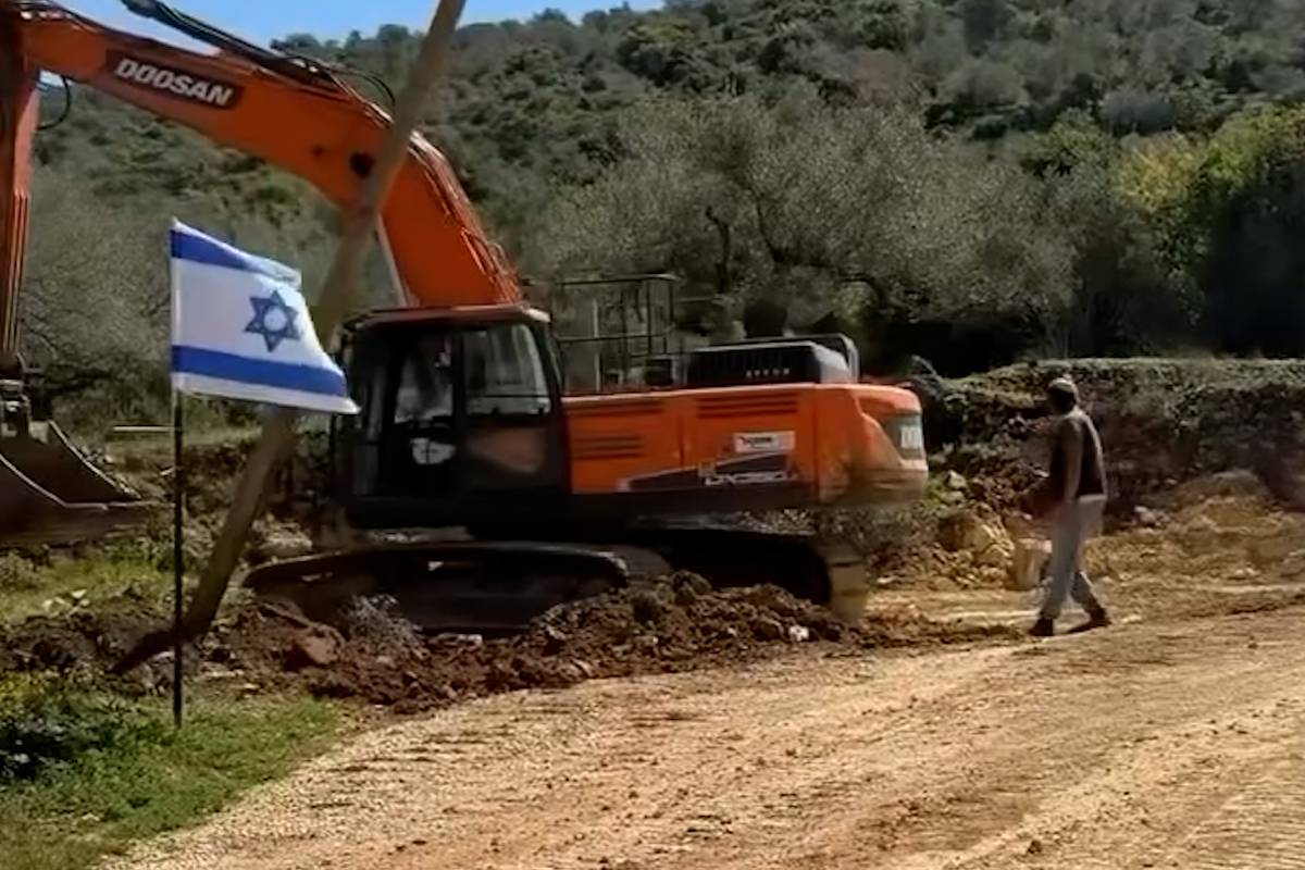 Colonos usam escavadeira para avançar na Cisjordânia