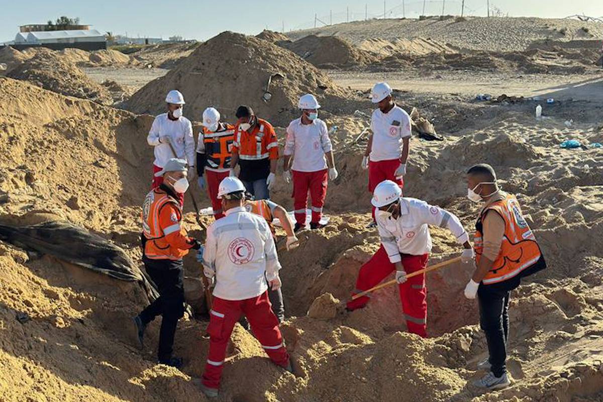 Israel enterra corpos e veículos de médicos