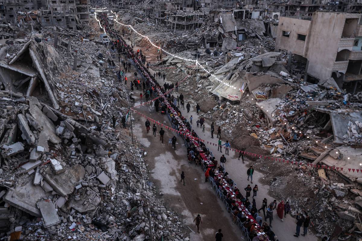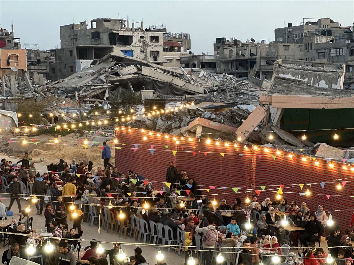 Palestinos deslocados em Gaza realizam iftar comunitário no primeiro dia do Ramadã