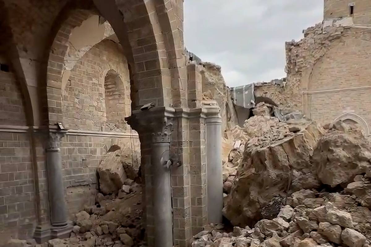 Caminhando pelas ruínas da Grande Mesquita de Omar, em Gaza