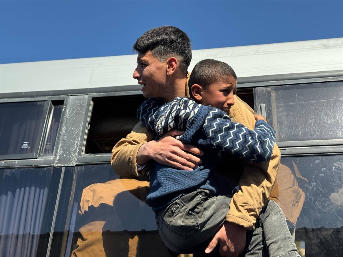 Palestinos libertados pelas forças israelenses são levados ao Hospital Europeu de Gaza em Khan Yunis