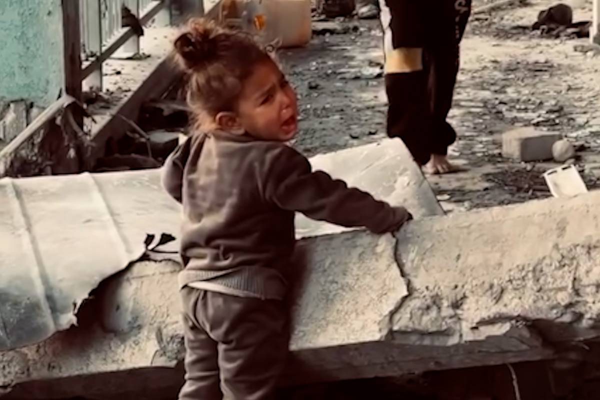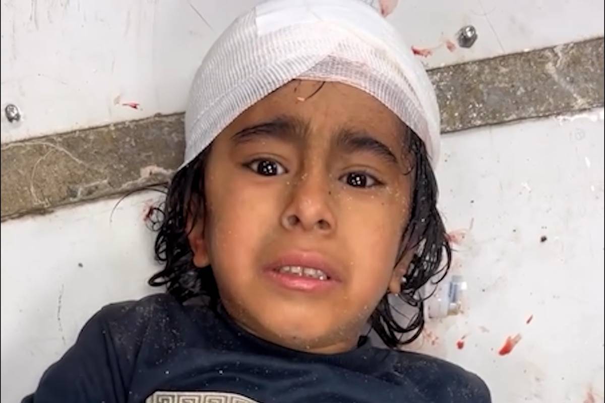 Criança treme de medo após ataque de Israel aos arredores de hospital em Gaza