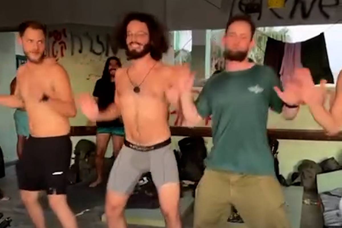 Soldados israelenses dançam após expulsar famílias de escola em Gaza