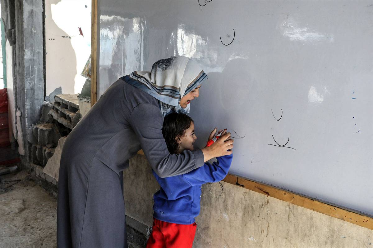 Professores voluntários reconstroem escola de Gaza deixada em ruínas