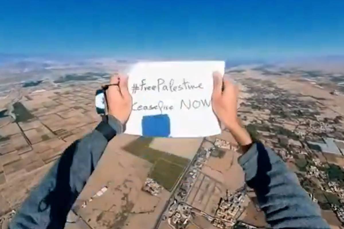 Paraquedista pede cessar-fogo em Gaza ao saltar de avião
