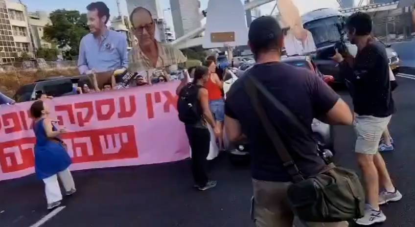 Colonos bloqueiam a principal rua Ayalon de Tel Aviv para exigir um acordo de troca de prisioneiros.