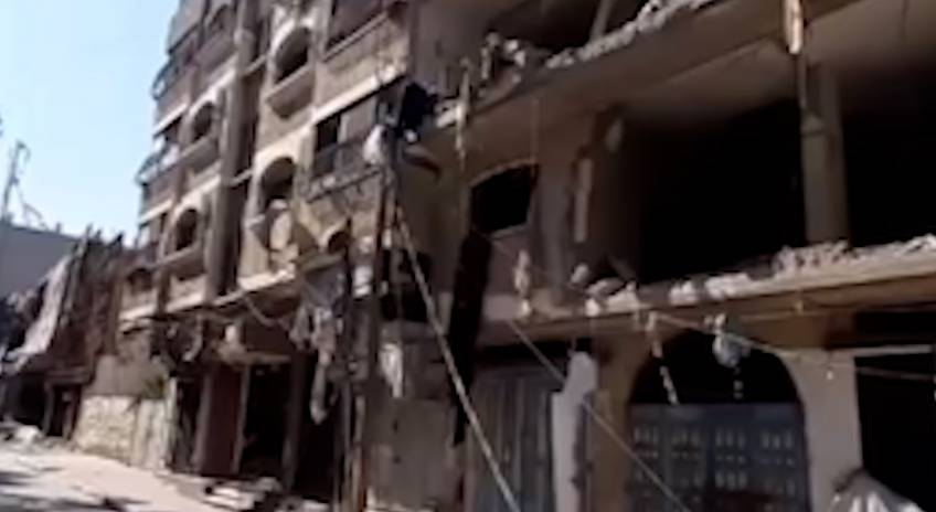 Destruição extensa na Rua Al-Shada, no bairro de Al-Rimal, no centro da Cidade de Gaza.