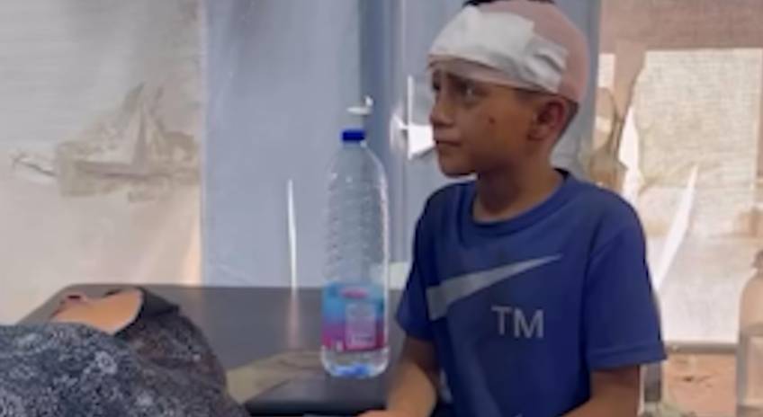 Criança ferida acompanha a mãe, também ferida, após ataques de Israel