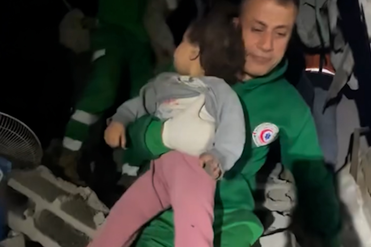 Equipes de defesa civil conseguiram resgatar uma mulher sob os escombros de uma casa que foi bombardeada por aviões de guerra israelenses na cidade de Jabalia, ao norte de Gaza.