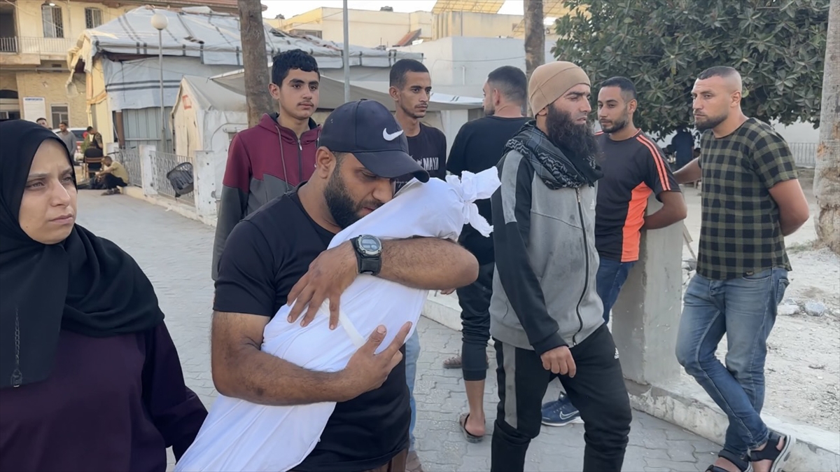 Médica palestina recebe os restos mortais carbonizados de seus nove filhos após um ataque aéreo israelense contra sua casa no sul de Gaza
