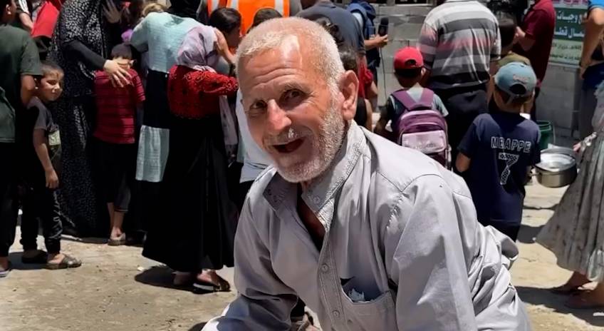 Idoso palestino espera horas para alimentar sua família no norte de Gaza