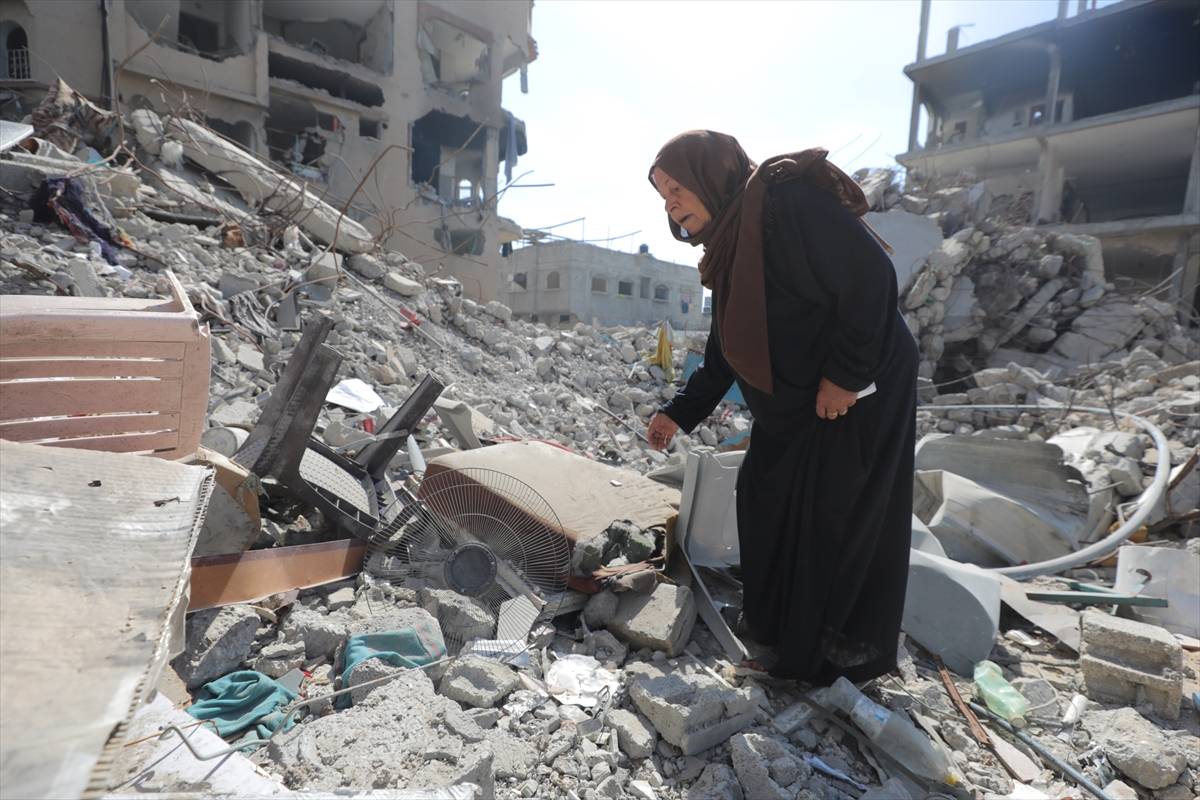 Mãe palestina procura os corpos de seus filhos mortos em ataque israelense emGaza