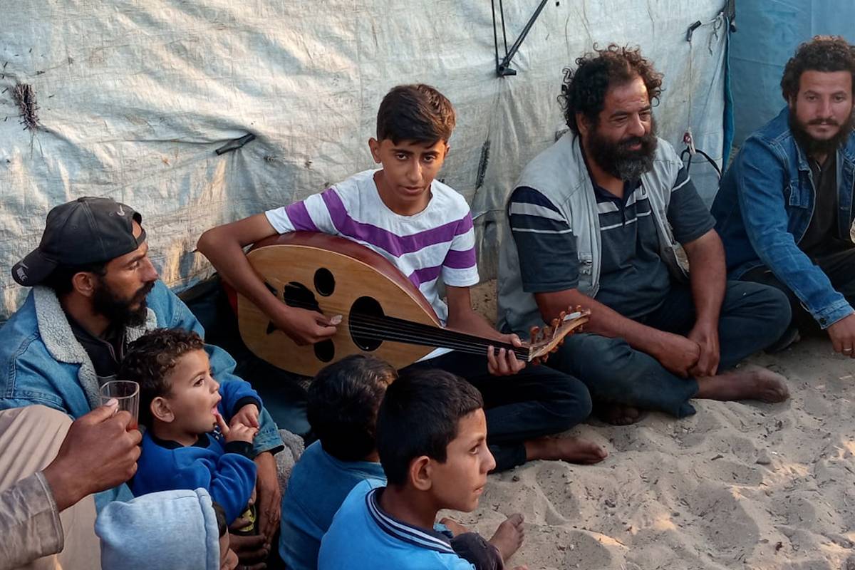 Jovem estrela do alaúde traz alegria aos campos de Rafah