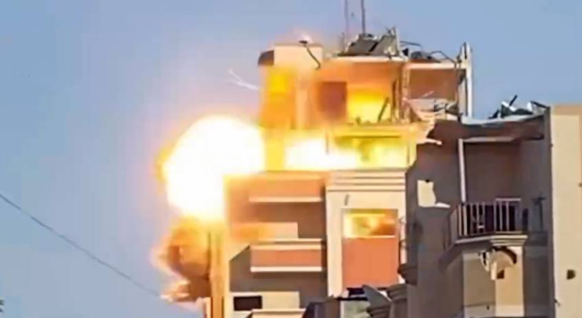 Cidadão palestino registra bombardeio israelense a um prédio civil