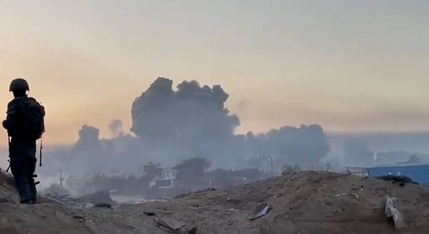 Soldados israelenses tiram selfie com bombardeios em Gaza