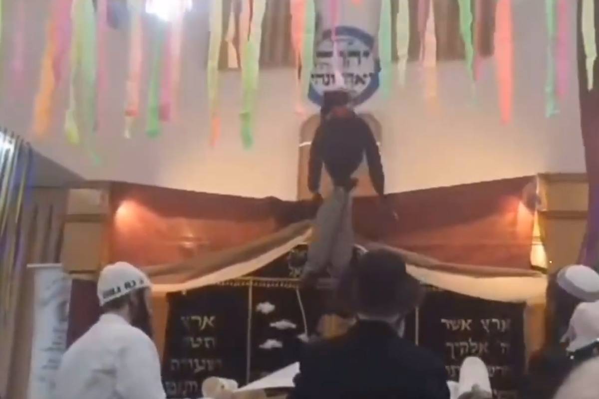 Israelenses celebram efígie palestina pendurada no teto de uma sinagoga