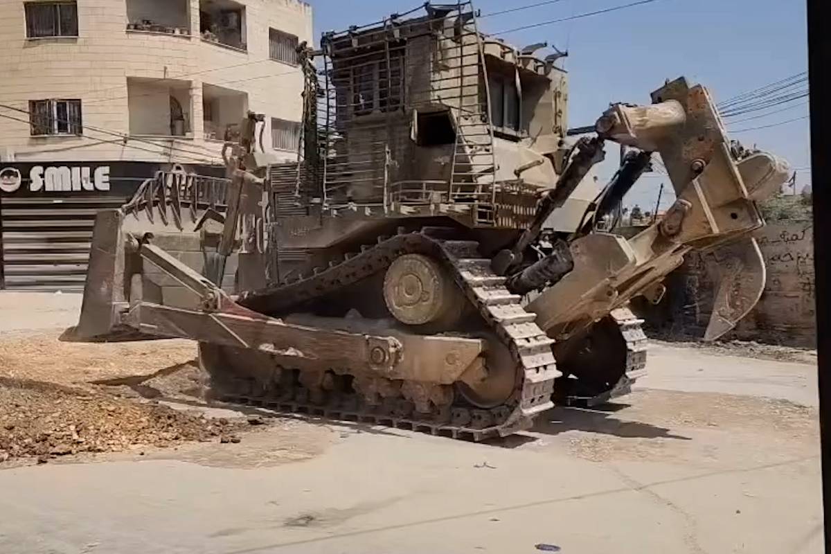 Trator israelense destrói ruas de Jenin, na Cisjordânia ocupada