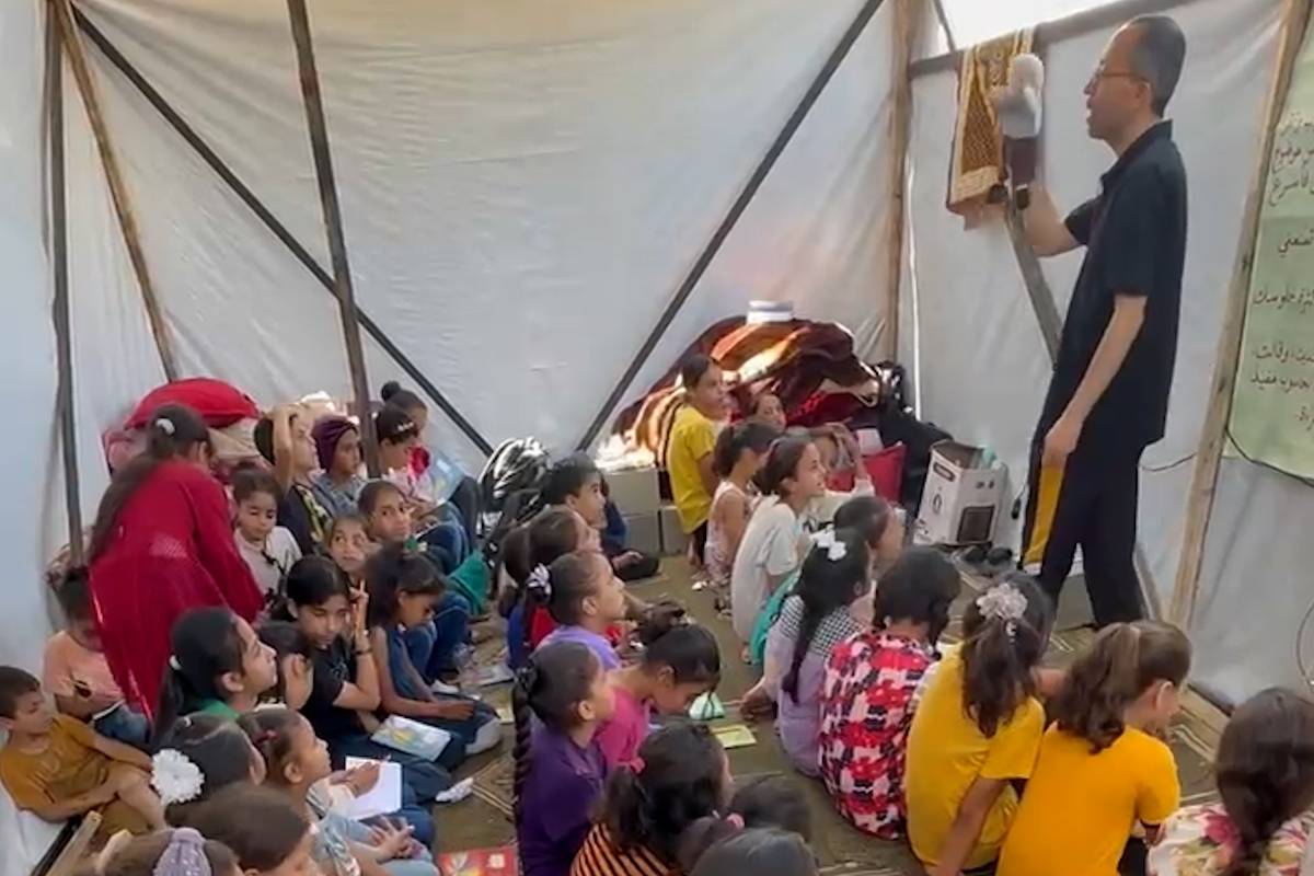 Professor de Gaza transforma barraca em escola improvisada para crianças desabrigadas
