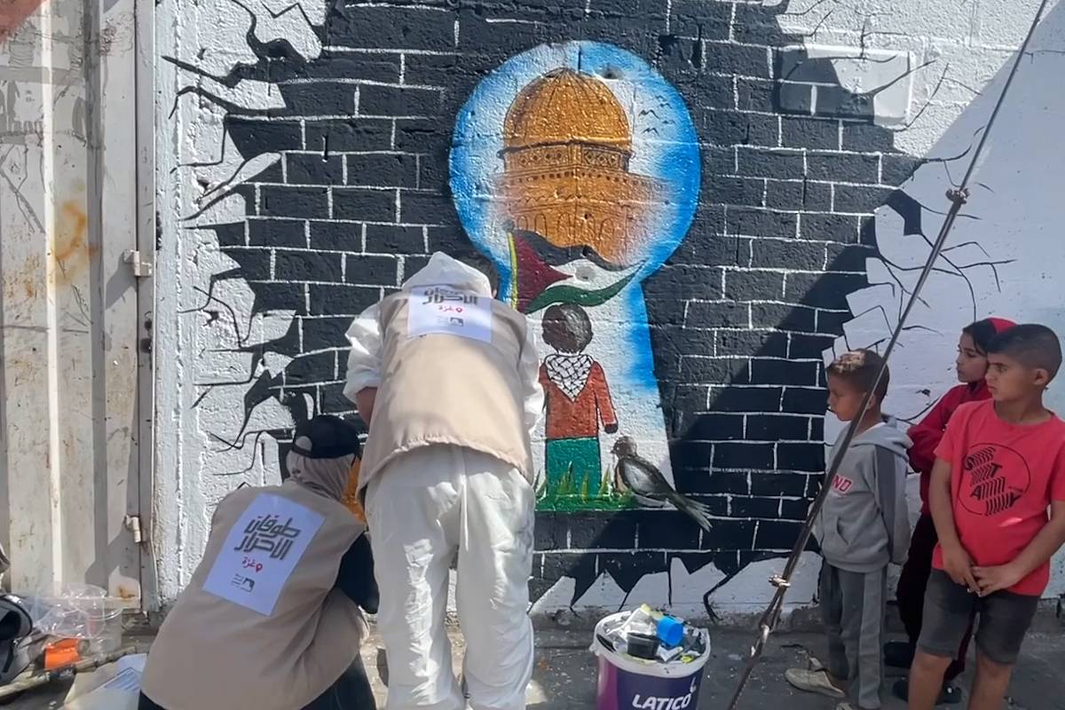 Refugiados de Gaza celebram dia de al-Quds com mural por ‘Palestina livre’