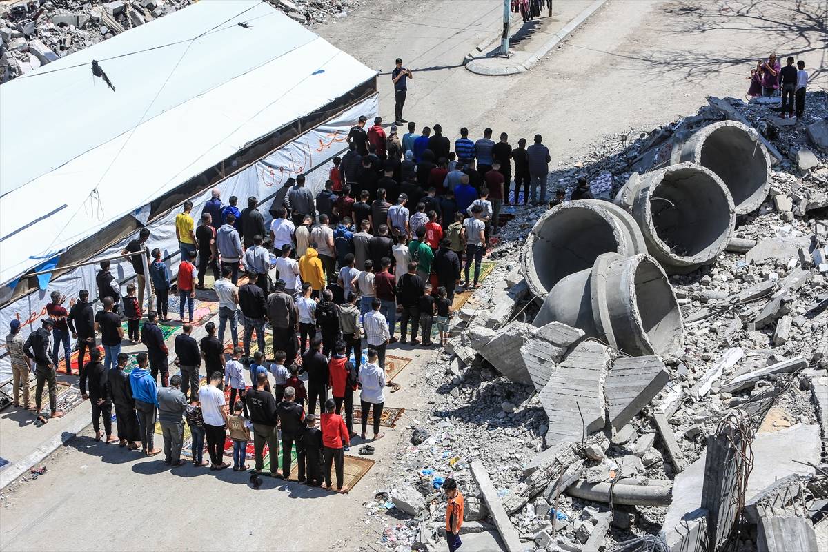 Oração de sexta-feira realizada entre rublos da mesquita Al-Farooq destruída por ataque israelense