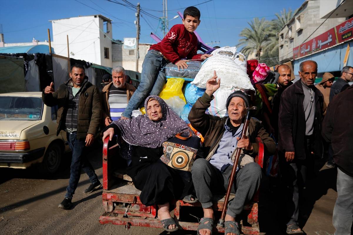 Moradores do campo de refugiados de Al-Maghazi saem de casa em busca de lugares mais seguros devido aos ataques israelenses