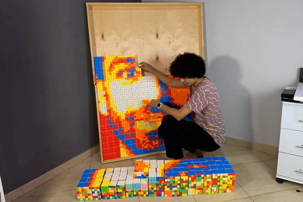Estudante egípcio cria cubo mágico com retrato de Mohamed Salah
