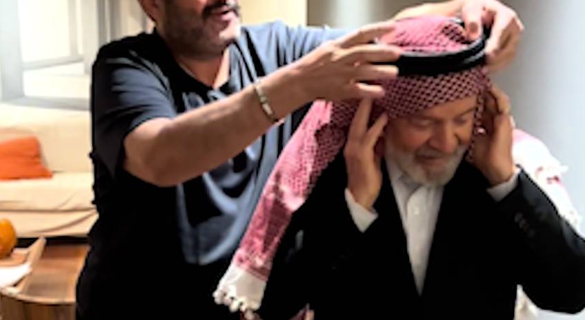 Lula veste Keffiyeh presenteado por comunidade árabe