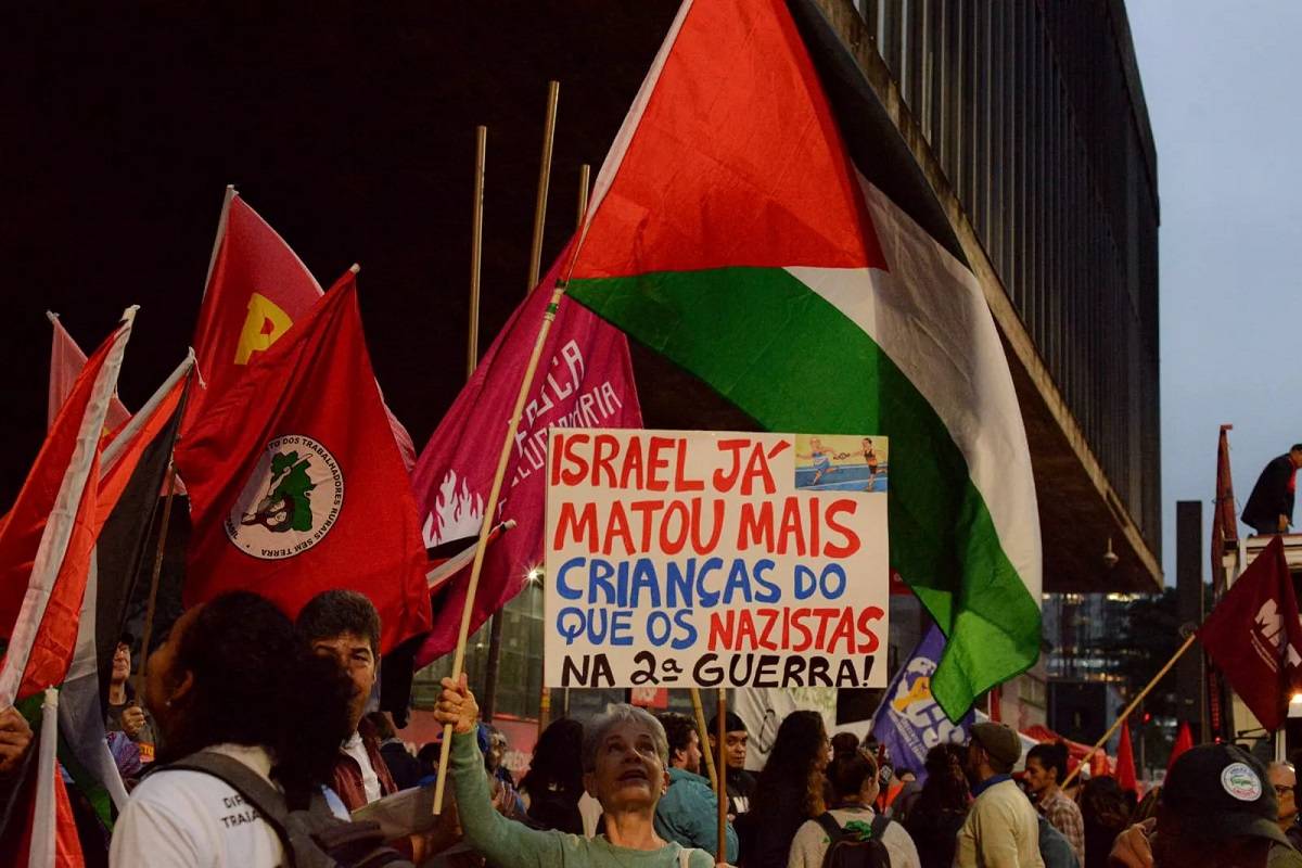 Ato na Av. Paulista pede o fim do apoio indireto do Brasil à guerra contra Gaza