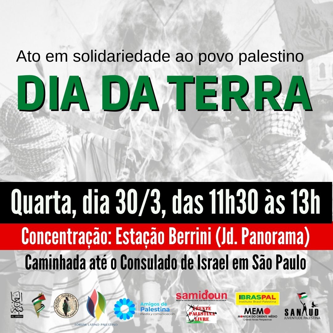 Dia da Terra Palestina terá ato de rua em São Paulo