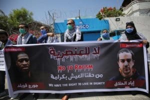 Artista palestino imortaliza George Floyd no Muro da Separação.