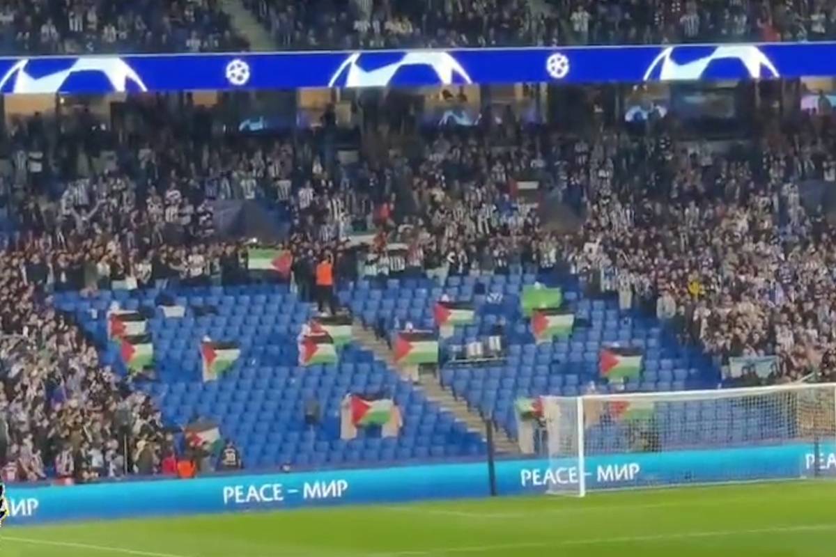 Torcedores do clube espanhol Real Sociedad se solidarizam com Gaza