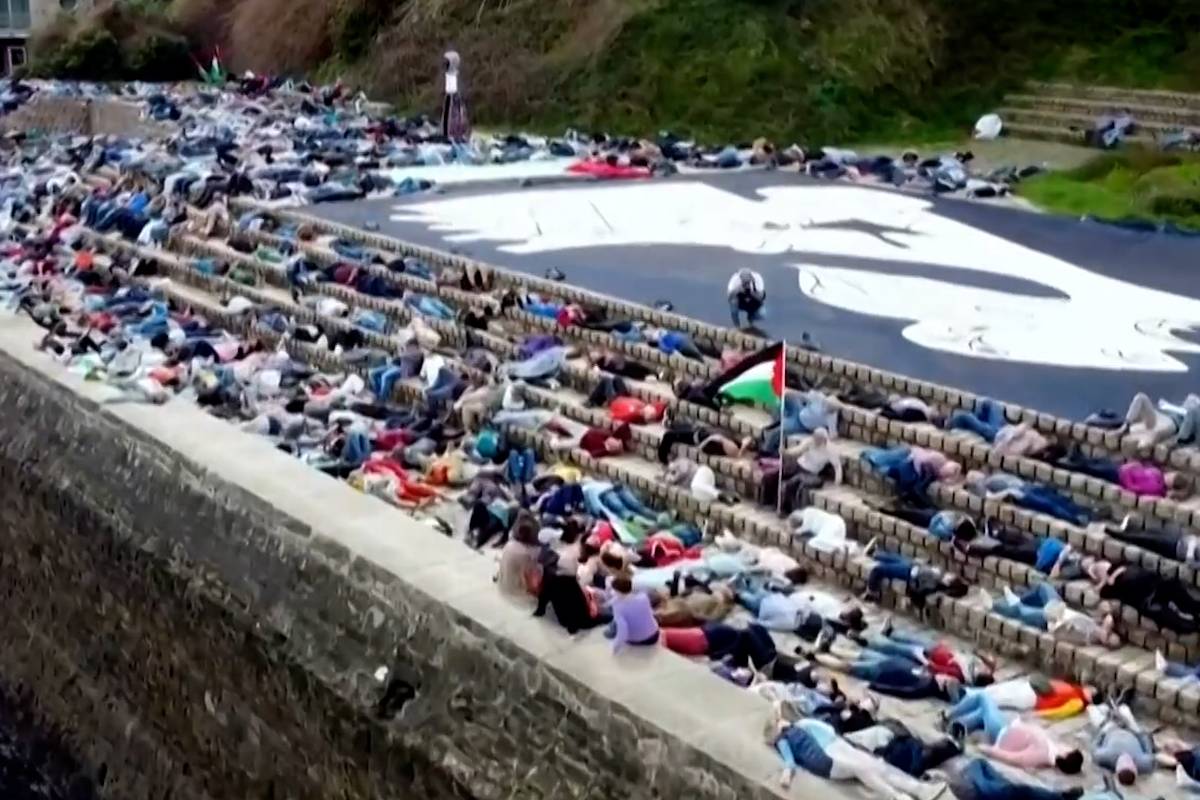 Milhares se fingem de mortos em apoio a Gaza, em San Sebastian, na Espanha