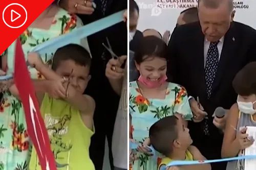 Menino supera Erdogan e corta fita de inauguração antes da cerimônia