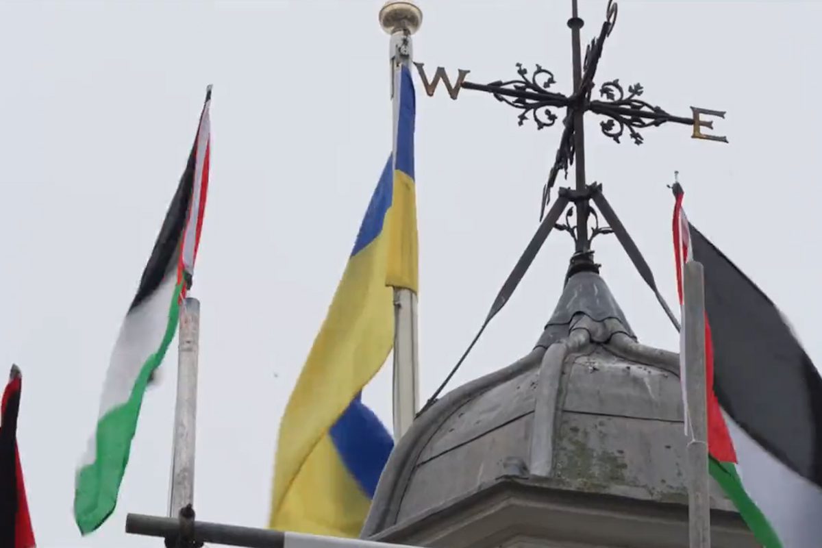 Ativistas hasteiam bandeira da Palestina sobre prédio da prefeitura do Reino Unido