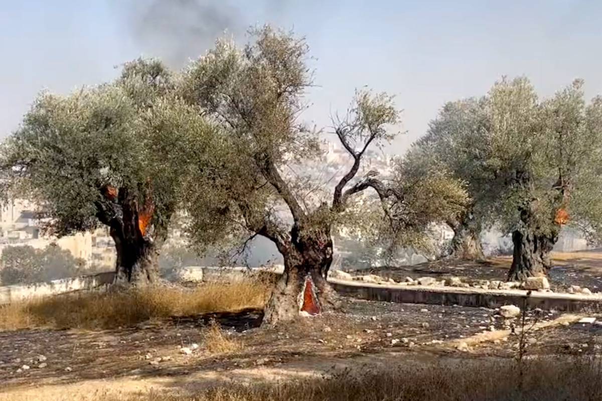 Colonos israelenses ateiam fogo em oliveiras palestinas de mil anos