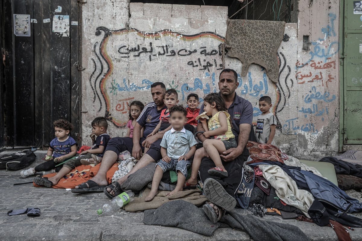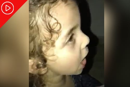 Menina palestina reza para que Deus a proteja durante bombardeio