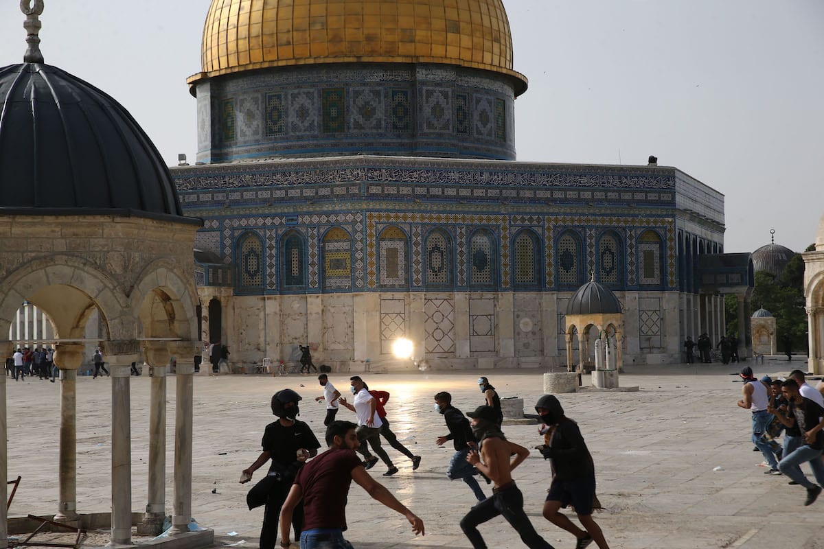 Palestinos formam Domo da Rocha com balas e granadas lançadas por Israel em Jerusalém