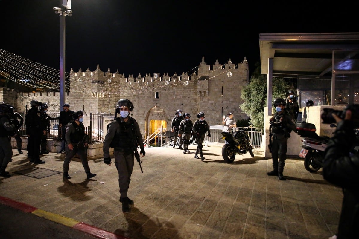 Manifestantes palestinos forçam a polícia de Israel a se retirar do Portão de Damasco em Jerusalém