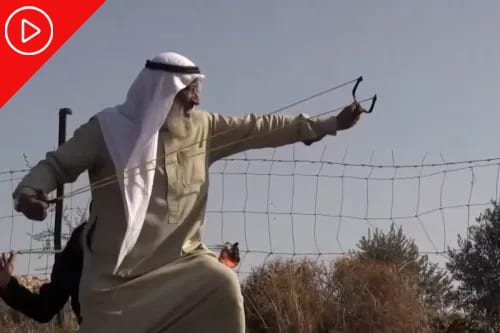Homem palestino resiste à ocupação de Israel com um estilingue
