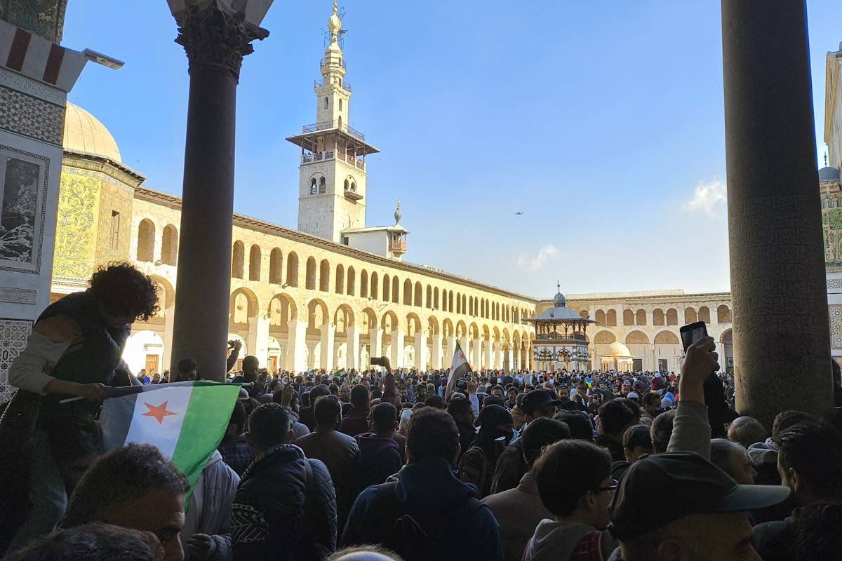 Primeira oração de sexta-feira realizada na Mesquita Umayyad após o colapso do regime Baath de 61 anos