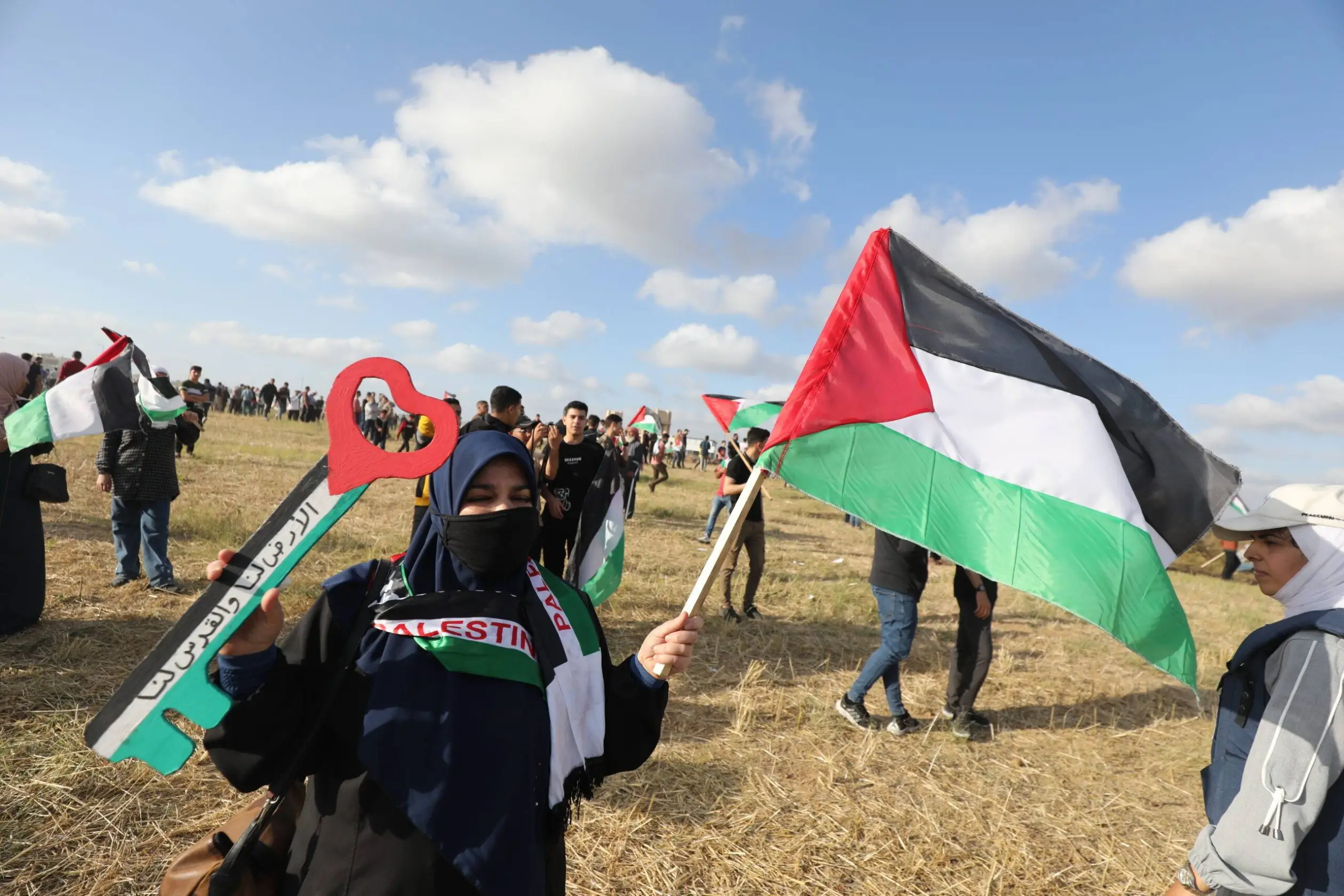 Palestinos de Gaza protestam contra Marcha da Bandeira, ato racista de Israel