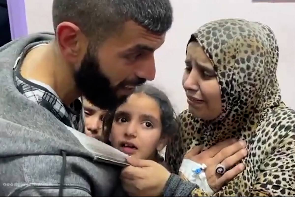 Paramédico de Gaza consola seus filhos após bombardeio destruir sua casa